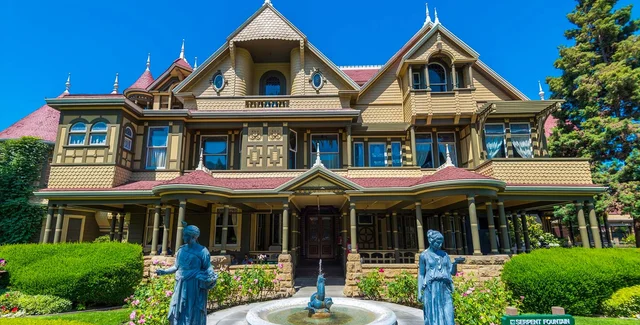 Этот огромный особняк в Сан-Хосе, Калифорния, воплощает в себе историю, связанную с насилием и смертью, и его размеры в основном объясняются неослабевающей чувством вины Сары Винчестер.
