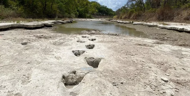 Засуха уже не в первый раз обнажает некоторые из этих доисторических следов, но в этом году, по данным Chron, их можно увидеть значительно в большем количестве. Один из них получил название "след одинокого рейнджера". Он считается одним из самых длинных следов динозавров в мире.