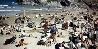 Он написал в Твиттере: "Британские военные рабочие бегут к морю — этот пляж в Корнуолле был сфотографирован в сентябре 1943 года. (Было бы здорово, если бы кто-нибудь из вас смог определить, какой пляж!)" Но когда он опубликовал снимок моря, пользователи Твиттера отметили, что среди людей в закатанных брюках, панамках, отдыхающих на шезлонгах, произошла очень необычная сцена.