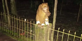 Предположительно животное получило раны от сидения на линиях электропередач. Врачи приняли обезьяну и перевязали ее раны бинтами.