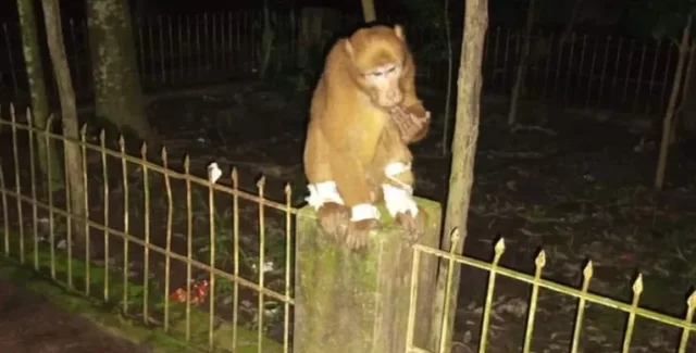 Животное появилось в медицинском комплексе Sitakunda Upazila в городе Читтагонг после того, как получило травмы, предположительно вызванные сидением на линиях электропередач. Врачи приняли обезьяну и перевязали его раны бинтами.