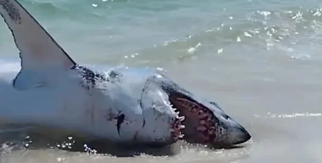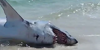 Тащили за хвост: в США отдыхающие спасли огромную акулу, которая "села на мель" (видео)