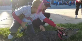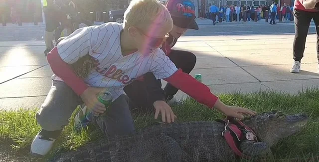Хотя крокодила по кличке Уолли не пустили на бейсбольный матч, его видели обнимающимся с болельщиками Phillies за пределами их арены. Рептилия вызвала ажиотаж в соцсетях.