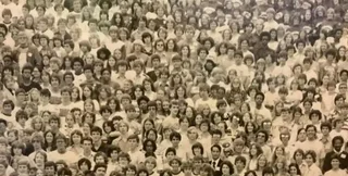На снимке вы видите группу студентов, состоящую из мужчин и женщин. Но если внимательно присмотреться к фотографии, то можно заметить, что где-то там притаилась панда.