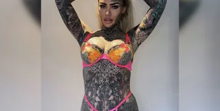Бекки Холт из Пойнтона (графство Чешир) потратила 35 тыс. фунтов стерлингов (40 тыс. евро) на татуировки, которыми покрыто 95% ее кожи, в том числе лицо, подмышки и прочие интимности.