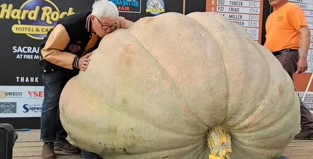 Мужчина из Ричмонда, Британская Колумбия, надеялся на хороший результат, ведь недавно он уже выиграл 20 000 долларов на другом конкурсе в Сакраменто. "Мама" весила на том конкурсе 2 212 фунтов (чуть более 1003 кг). Она огромная, но не сможет побить мировой рекорд.