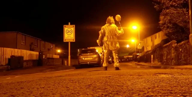 Неизвестный, одетый как клоун Пеннивайз из классического фильма ужасов Стивена Кинга "ОНО", похоже, преследует жителей на улицах одного из шотландских сел. Теперь он бросает вызов полиции Скелморли, Северный Айршир, чтобы ее сотрудники выследили его.