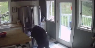 Сам открыл холодильник: голодный медведь ворвался в дом и украл лазанью (видео)