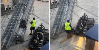 На ролике показано, как технический работник аэропорта отпускает с длинного металлического пандуса в верхней части незакрытого багажного отделения инвалидную коляску одного из пассажиров авиакомпании, а его коллега ждет внизу и не прилагает никаких усилий, чтобы поймать или хотя бы замедлить его движение.