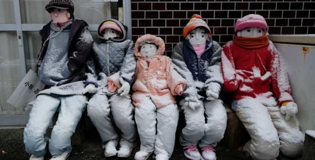 Куклы появились по всей деревне Нагоро, в том числе в школах, на автобусных остановках, в кафе и даже на строительных площадках.