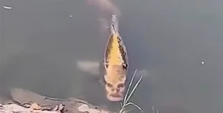 Еще в 2019 году кадры были опубликованы в китайской социальной сети Weibo. На них видно, как рыба подплывает к краю озера и высовывает голову над поверхностью воды.