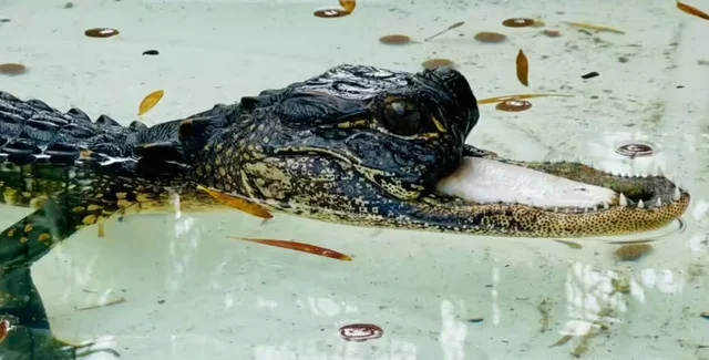 Новая жизнь: аллигатор без верхней челюсти стал "перебирать едой" (видео)