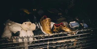 Блестящие золотые кроссовки Nike было легко заметить в куче других вещей. Личность того, кто пожертвовал обувь, остается загадкой.