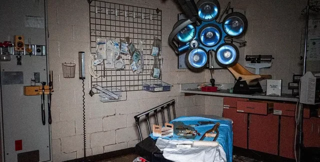 "Мы нашли нечто ужасающее в этой заброшенной больнице", — слышно голос мужчины.