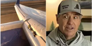 "Как раз собираемся приземлиться в Денвере, а крыло распадается на части", — комментирует Кевин за кадром в видео, опубликованном в сети.