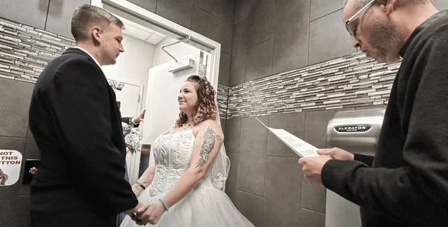 После нескольких лет отношений Логен Эбни и Тиана Эйлсток из Кентукки приняли решение пожениться. Молодожены, живущие в районе Цинциннати, обменялись клятвами в туалете магазина Hop Shops в Вероне.
