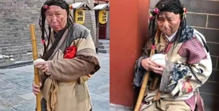 Лу Цзинган носит порванные лохмотья, ходит с грязным лицом и умело выпрашивает деньги у туристов, которые хотят помочь бедняку.