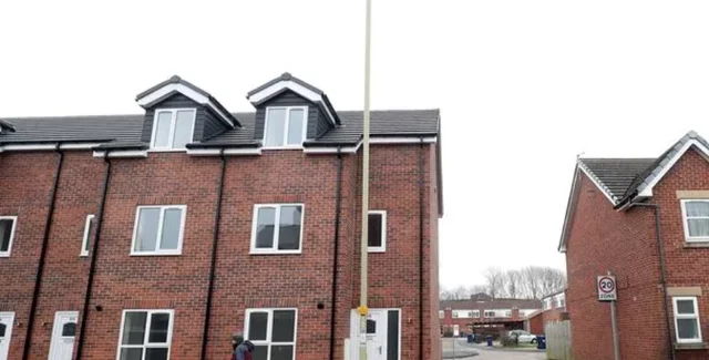 В комплексе от застройщика Hepscott Developments Ltd в Саут-Шилдсе (Южный Тайнсайд, Великобритания) допустили незначительный инженерный промах: один из столбов расположен прямо посреди подъездной дороги, а другой — блокирует входную дверь.