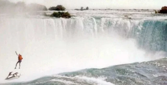 39-летнего каскадера Роберта Оверакера из США сняли на видео, когда он пытался на водном мотоцикле спуститься с Ниагарского водопада на глазах у тысяч туристов, но попытка закончилась трагически. Об этой истории вспоминает британский таблоид The Mirror.
