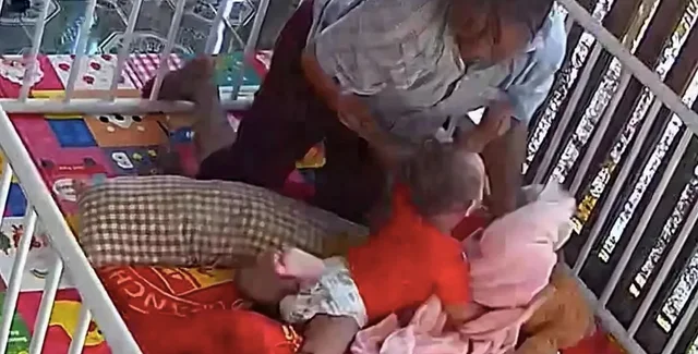 Случай произошел 11 марта. На записи бабушка находится с ребенком в манеже, а он с любопытством указывает на животное у двери. Женщина поворачивается, чтобы посмотреть, и ужасается от вида крупной змеи, которая мчится навстречу.
