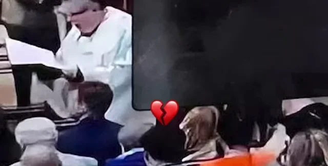 По словам ведущих, скандальный случай вызвал переполох среди присутствующих в церкви.