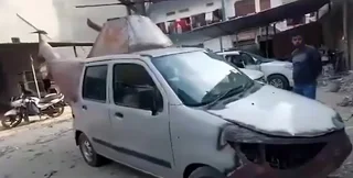Ишвар Дин потратил более двух месяцев на то, чтобы сделать семейный автомобиль похожим на летательное средство, чтобы сдавать его в аренду для проведения свадебных торжеств.