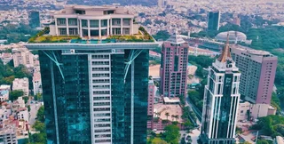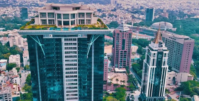 Расположенный на вершине 33-этажного комплекса элитных квартир UB City в Бенгалуру этот "небесный особняк" площадью более 3700 квадратных метров имеет два этажа, вертолетную площадку, пышные сады, большой бассейн и 360-градусную смотровую площадку.