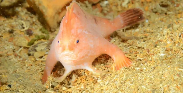 Вблизи Тасмании аквалангисты обнаружили редкую розовую рыбу "с руками" (видео)