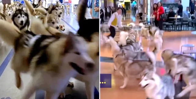 Бегали, выли и ели все подряд: более 100 хаски разнесли торговый центр (видео)