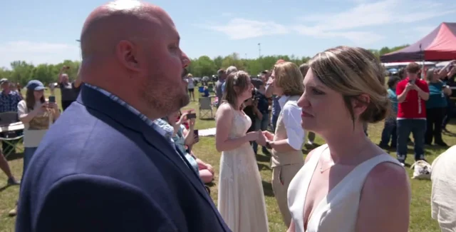 Один из участников групповой свадьбы во время солнечного затмения Киган Райт признается, что не мог упустить такую возможность, ведь она выпадает лишь раз в жизни.