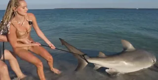 Животное неоднократно пыталось вырваться, но друзьям девушки удавалось удерживать его в неподвижном состоянии, пока она позировала для различных фотографий. Рейнольдс даже села на спину акулы и с помощью своей команды держала ее пасть открытой.