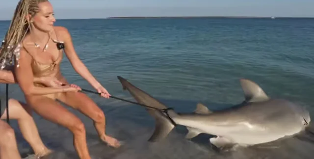 Во время одной из своих прямых трансляций на сервисе Kick девушке удалось поймать акулу на удочку. Вместе с друзьями она подтянула ее к берегу и обвязала хвост тросом, чтобы она не уплыла.