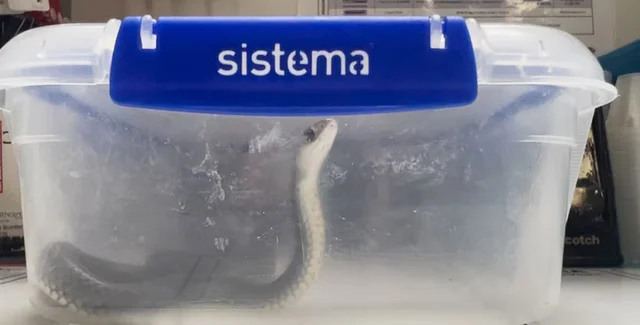 Хотела выбраться: в больницу принесли ядовитую змею в контейнере для еды (фото)