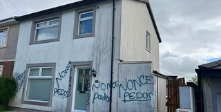 Так называемый "дом вашей мечты" расположен в городе Суонси, что на юге Уэльса. Для продажи были опубликованы 13 его "ничем не примечательных фотографий" и одна особенная — с тревожными граффити. Надписи paedo и nonce украшают переднюю стену с дверной рамой не просто так, отсылая к истории этого поместья.