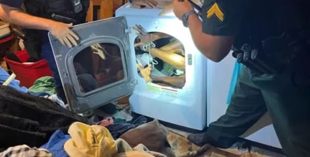 "Его вытаскивали из сушилки по одной конечности, пока он цеплялся за свое укрытие", — сообщили в офисе шерифа.