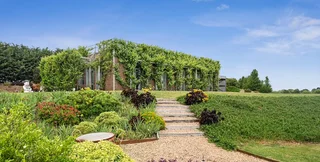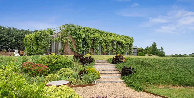 Оплетенный виноградной лозой дом расположен на 3 гектарах земли возле извилистой подъездной дороги