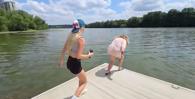 В среду, 29 мая, девушка вела прямую трансляцию на озере Леди Берд в Остине. Натали сказала женщине просто прыгнуть. Однако она была удивлена после того, как она действительно бросилась в воду головой вперед.