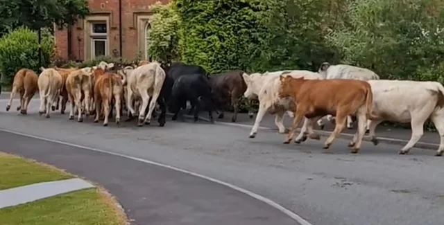 В пятницу, 5 июля, стадо из 45 коров разом вырвалось на свободу в деревне в Северном Йоркшире (Англия). Сбежавшие животные не имеют ничего общего с бегом быков. Об этом пишет Metro.