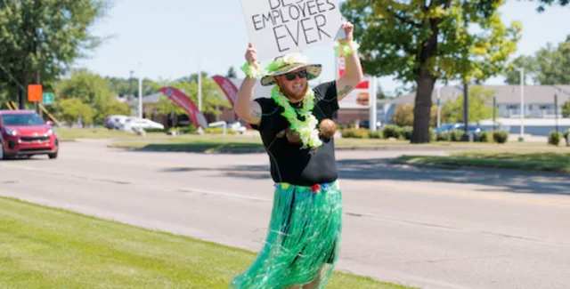 "У меня лучшие работники": шефу пришлось выйти на трассу в бюстгальтере из кокосов и юбке