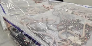 Каждый мешок содержал несколько живых змей разной формы и цвета. После подсчета было найдено 104 змеи.