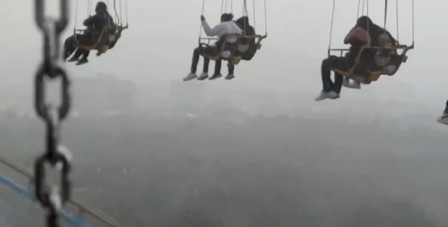 Повисли в воздухе: аттракцион с людьми остановился в разгар мощного шторма (видео)