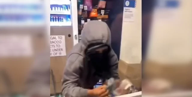 Инцидент произошел в магазине Tesco в районе Стратфорд, что на востоке Лондона. На видео видно, как сотрудники магазина беспомощно наблюдают за грабителем в маске, который похищает деньги из кассы. Злоумышленник, похоже, имел с собой большую сумку, наполненную табачными изделиями и сигаретами.