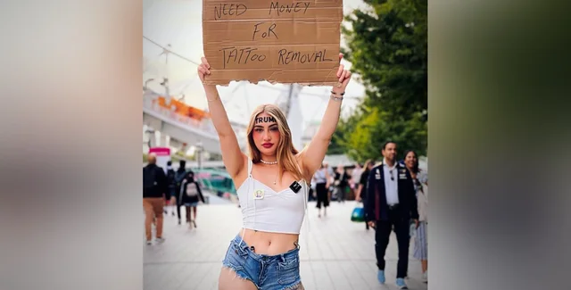 Сторонница Дональда Трампа, которая привлекла внимание СМИ и соцсетей из-за своей радикальной татуировки, теперь просит у прохожих в Лондоне о финансовой помощи.