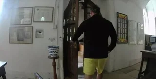 На кадрах, которые были сняты охотником за привидениями, видно, как мужчина вздрогнул от шума открывшейся двери. Он вышел на улицу, оббежал вокруг здания церкви, но никого не находит.