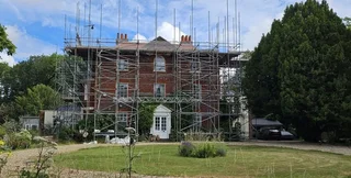 По словам владельца здания, теперь на лесах растет плющ, потому что они стояли долго.