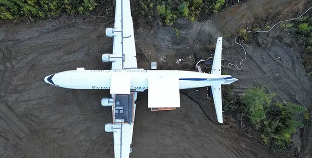 Находится борт на частной взлетно-посадочной полосе в городе Уасилла и постоянно кажется, что он готов ко взлету. Внутри же возникает определенный диссонанс, ведь там расположена просторная столовая, кухня, уютная гостиная, несколько спален, ванная комната и даже выход в кабину пилота.