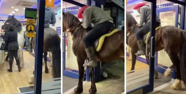 "Не думаю, что их обслужили. Почти уверен, что этим ребятам сказали уйти, потому что нельзя держать лошадей в магазине. Посмотрите на бедняг за прилавком сейчас. Внутри находилось много людей, когда это произошло. Все были удивлены, но смеялись. Вы знаете, я всякого насмотрелся, стоя за прилавком, но это что-то новое", — добавил Годбир.