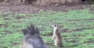 В заповеднике подружились бородавочник и сурикат | Фото: Скриншот
