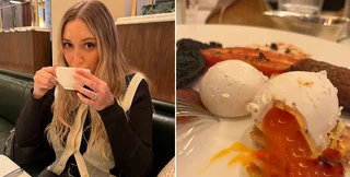 "Во-первых, вы можете выпить любой чай или кофе с пополнением в течение всего времени трапезы. Также вы получаете стакан восхитительного свежего апельсинового сока. При заказе нас спросили, хотим ли мы получить выпечку до или после яичницы, и мы решили взять первую в качестве закуски, хотя она была бы не менее вкусной и в качестве пудинга", — рассказывает Джессика Гибб.