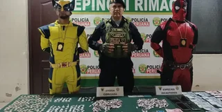 На видео, снятом во время пресс-конференции полиции Перу, можно увидеть правоохранителей, которые так и не сняли маскарадные костюмы. На столе — пакетики различной конфигурации с запрещенными наркотическими веществами, деньги и телефон.